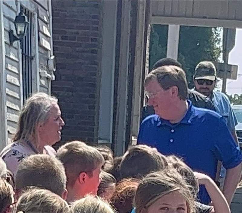 One of Governor Tate Reeves 10 stops in Northeast Mississippi today was our very own town of Kossuth! Teachers and staff took advantage of a once in a lifetime for some kids to get to meet the governor of our state. We were honored to have him visit!